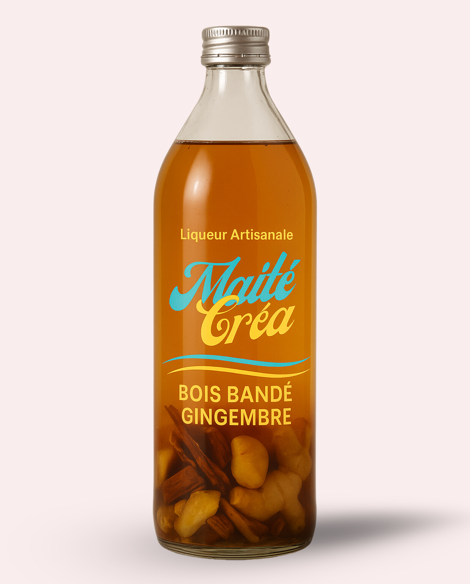 Découvrez l’Élixir Bois Bandé Gingembre, un rhum arrangé artisanal des Antilles signé MaitéCréa. Macération de bois bandé et gingembre frais dans rhum agricole, adoucie au sirop de canne. Disponible en 18°, 25° et 33°.